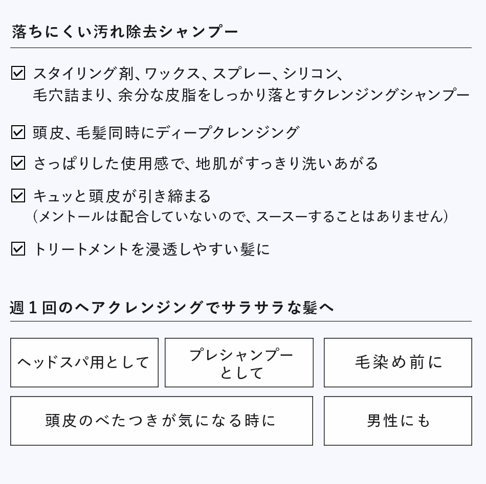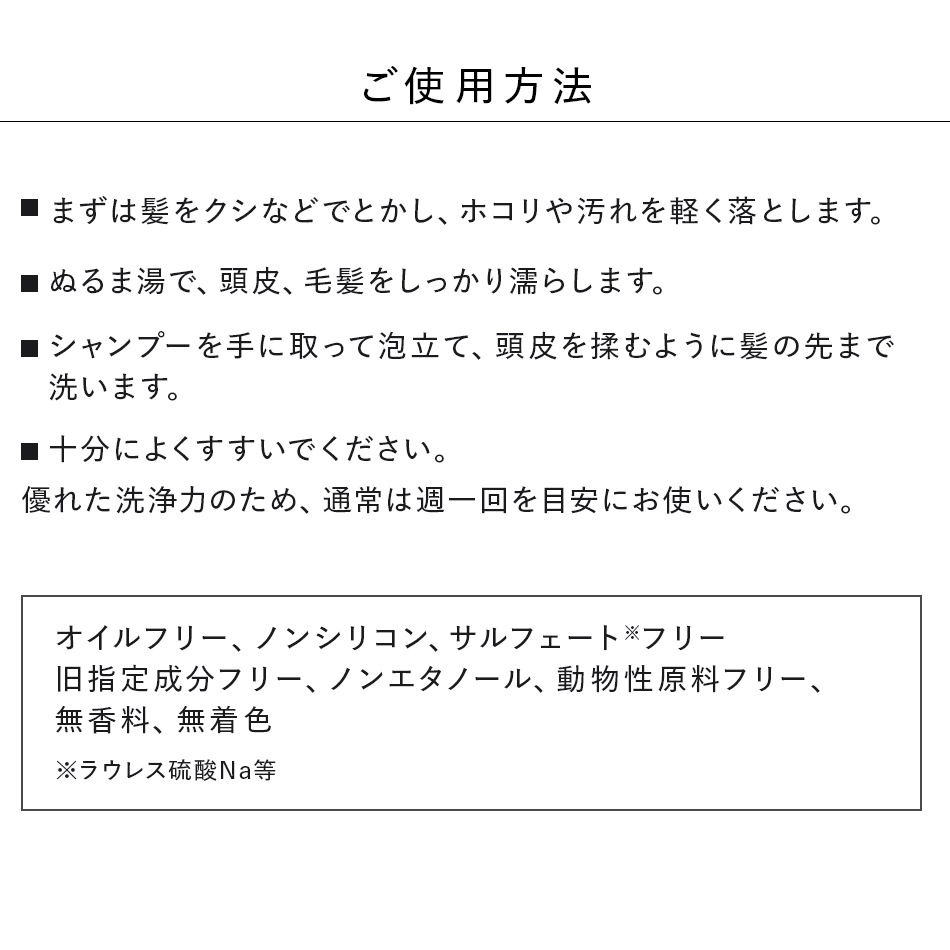 優れた洗浄力のため、通常は週一回を目安にお使いください。 |